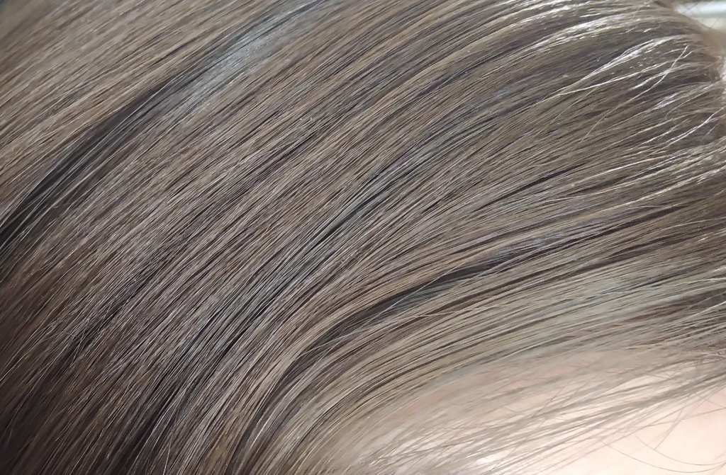 結論から言うとカラーチャートよりモデルさんの写真の方が近い色だなと思いました。ブリーチしている部分は緑っぽさも感じるマットアッシュのような色味になりました✨ 長めに放置したので、あまり緑っぽくしたくない方は短めにしておくと良いかもしれません。